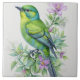 Carreau Beau oiseau vert, fleurs. Détail complexe