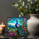 Beautiful Peacock 2 Among Flower Garden présente un paon coloré perché dans un arbre avec ses plumes de queue qui descendent contre un arrière - plan de riches feuillages et collines et fleurs fleurissant avec un effet de vitrail sur un carrelage en céramique. Il y a beaucoup d'utilisations pour ces merveilleux carreaux en céramique. Cette conception est également disponible dans une image miroir. Voici une image miroir de Beautiful Peacock 2 Among Flower Garden. . Disponible en 2 tailles 4,25 po x 4,25 po et 6 po x 6 po.