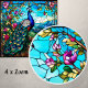 Le magnifique Peacock Among Flower Garden présente un paon coloré perché dans un arbre, avec ses plumes de queue qui descendent contre un arrière - plan de riches feuillages, de collines et de fleurs qui fleurissent avec un effet de vitrail sur un carrelage en céramique. Il y a beaucoup d'utilisations pour ces merveilleux carreaux en céramique. Cette conception est également disponible dans une image miroir. Disponible en 2 tailles 4,25 po x 4,25 po et 6 po x 6 po.