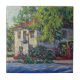Belle maison historique à New Harmony, Indiana entourée de feuillage coloré et d'arbres avec des ombres tombant de l'autre côté de la rue. Illustration de la peinture impressionniste originale à l'huile du peintre d'art Daniel Fishback.