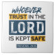 This powerful Bible verse from Proverbs 29:25 reminds us that “Whoever trusts in the Lord is kept safe.” Designed with bold modern typography and spiritual depth, this Christian quote is perfect for those who place their faith in God above fear. Ideal for shirts, mugs, wall art, phone cases, or gifts for churchgoers, pastors, or believers looking for daily encouragement rooted in Scripture.