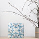 Décor unique en céramique avec un motif géométrique en pierre fissuré dans les tons bleu et blanc.