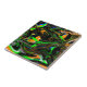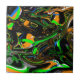 Carreau Bleu, Vert citron, orange, noir et blanc Abstrait