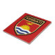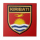 Le drapeau national de Kiribati est infusé en forme de bouclier avec le nom du pays ajouté au-dessus du drapeau.