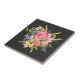 Une rose rose luxuriante est au centre de cette pulvérisation florale colorée. Les autres couleurs sont le jaune, la pêche, le turquoise, le violet, le bleu et l'orange.