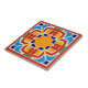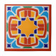 Brighten your space with this colorful Moroccan sun star ceramic tile in vibrant blue, yellow, and orange. Perfect for kitchen backsplash, wall art, or Mediterranean decor.