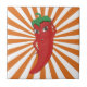 Un personnage de dessin animé rouge et poivre chaud. Conception originale avec fausse impression de broderie. Carreaux céramiques personnalisés. Tout ce qui semble est imprimé sur papier. Idée cadeau.