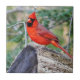 Le cardinal rouge vif orne la carreaux de céramique. Accessoire lumineux pour décoration maison.