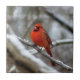 Un cardinal rouge vif ajoute une pop de couleur lors d'un jour de neige morne.