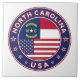 Badge de Caroline du Nord avec drapeau de Caroline du Nord et drapeau des États-Unis couleurs, forme arrondie. Emblème de Caroline du Nord. Sceau de Caroline du Nord. Collection USA Etats.