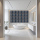 Ce carrelage élégant présente un motif à clé grec classique, également connu sous le nom de motif méandre, dans une couleur or frappante contre un arrière - plan bleu profond. Le design géométrique ajoute une touche d'élégance et de sophistication à tout espace, ce qui le rend parfait pour une utilisation comme accent décoratif ou dans le cadre d'un projet de carrelage plus vaste. Les détails complexes et les lignes audacieuses du motif clé grec créent un look visuellement attrayant et intemporel.