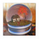 À l'intérieur d'un "globe de neige" se trouve un paysage d'automne avec un chalet ombragé d'érables et de cerisiers. Le champ environnant est rempli de hautes herbes vertes et dorées. Roses et lierre grimpent le mur de la petite maison. L'érable est d'une brillante couleur d'automne, et au lieu de la neige, il y a des feuilles d'érables dans les tons rouge, orange et jaune qui tourbillonnent autour du globe et qui blanchissent l'herbe.