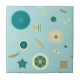 Des diatomées microscopiques, des algues unicellulaires avec une paroi cellulaire en silice, créent un motif amusant sur une mer de turquoise pâle et montrent certaines des nombreuses formes qu'elles prennent, comme les cercles, les étoiles, les carrés et d'autres. Cette tuile peut être encadrée pour créer un trivet ou placée à l'intérieur d'un couvercle de boîte cadeau en bois. Les carreaux sans cadre s'intègrent également dans la grande boîte cadeau pour créer un ensemble correspondant.
