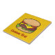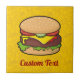 Illustration de dessin animé Cheeseburger. Les aliments indésirables entourent les icônes jaune motif arrière - plan. Texte personnalisé.