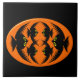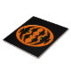 Cette tuile impressionnante présente un ovale orange avec six corneilles dedans. Chaque corbeau a des yeux jaunes avec des élèves noirs et des ailes étirées. Les corbeaux volent vers l'autre formant une forme ovale. L'arrière - plan est noir.