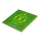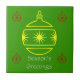 Des ornements de vacances (ronds, en forme de boule, avec une bande centrale d'étoiles) ornent cette "tuile de salutation". Le grand ornement central est jaune avec de petits ornements rouges dans les quatre coins. "Bonnes Fêtes" est en bas.