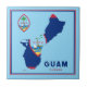 Le drapeau national de Guam est imprégné de la forme de l'île et côtoie les armoiries/sceaux du pays. Le texte ajouté est le nom du pays sous deux formes, l'anglais et le chamorro.