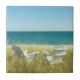 Cette photo comporte deux chaises d'adirondack faisant face à l'océan sur la plage à, île de Nantucket, le Massachusetts.