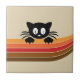Illustration de style rétro Abstrait avec rayures jaunes, orange, rouges et marron et décoration de chat noir mignon sur arrière - plan beige pour chaque chat et amant rétro. Il est facile de le customiser en ajoutant votre nom/monogramme, etc.