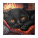 Carreau Chat noir posé devant une cheminée