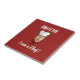 Chef avec casquette, collier rouge et texte personnalisé.