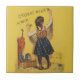 Cette image frappante est une image antique de la fin des années 1800 montrant une fille qui pratique son écriture de chocolat sur le mur. Voici une image Vintage d'affiche publicitaire datant de 1892. Menier est une société française de chocolat.