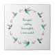 Carrelage en céramique pour les amateurs de colibris avec une couronne de colibris bleus tels que les colibris à oreille de violet, à bec large et à queue rousse et la citation "Le temps passé à observer les colibris n'est jamais perdu." Citation et images d'oiseaux par C. Dobbins.