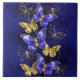 Composition de luxueux papillons saphir et bijoux en or sur arrière - plan à texture bleue.
