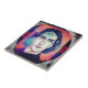 Portrait d'imaginaire Art numérique. Ces trois yeux vous regardent. Est-ce un elfe, un mage, ou autre chose ? Un mystère, une énigme. Des étoiles et des nébuleuses derrière lui. Un anneau de flamme pâle l'entoure.Texte : 화 재 - feu, talent artistique