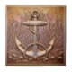 A powerful symbol of stability and history, this tile features a detailed naval anchor wrapped in rope, set amidst dynamic underwater flora. Rendered in a stunning bas-relief style, the design mimics an antique, sculpted metal plaque. The rich, warm copper finish provides a sophisticated, almost oxidized look, making it a perfect accent for industrial, rustic, or high-end traditional nautical interiors. Ideal for bar areas, dens, libraries, or masculine-themed spaces. Search ID1223 to see other marine elements in this dramatic metallic series. Note: design may contain generative content.