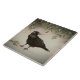 Un corbeau noir sous un faux-pied vert en fait un carrelage en céramique de vacances unique.