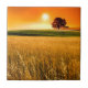 Vue grande-angulaire d'un coucher du soleil rouge sang au-dessus d'un champ de blé d'or. Arrière - plan générique - aucun emplacement