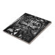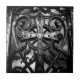 Une vieille croix celtique en fer forgé d'une porte sur une crypte en noir et blanc sur un carrelage.