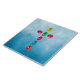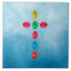 Croix faite d'oeufs colorés de Pâques isolés contre un arrière - plan à texture bleue qui sert de ciel. Joyeux Pâques !