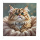 Un adorable carreau avec une adorable illustration d'un beau chat tabby moelleux portant un collier en diamant avec un arrière - plan turquoise.