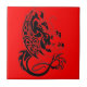 Ce carreau de céramique rouge avec une conception de dragon est une décoration unique pour chaque table. Il peut également être encadré et employé comme décoration de mur.
