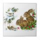 Carreau de céramique décoratif avec deux lapins vintages adorables dans un arrangement d'hiver.