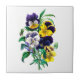 Groupe pourpre et jaune vif de pensées sur le carreau de céramique blanc.
