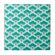 Tuiles en céramique dans un motif à crampons ou à vagues chinois, traditionnelles dans le textile et l'émaillage, en bleu turquoise doux, aqua / marine et blanc, avec accents de corail orange
