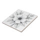 Une grande fleur au centre entourée de nombreux feuilles et de petits éléments floraux. La fleur a de grands pétales et un centre proéminent, avec des baies de feuillage délicates.