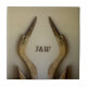 Deux hérons en bois Patinés se font face avec des initiales ou un nom entre eux sur cette carreaux en céramique rustique. Le motif en céramique côtière est basé sur une sculpture en bois vieilli d'un oiseau de mer. Cette image est la photographie originale d'oiseaux par JLW_PHOTOGRAPHY.