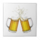 Deux Mugs de Bière claquent à un toast avec une tache de mousse de bière.