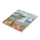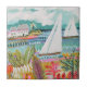 Deux voiliers et Cottage II de Karen Fields. Il comprend deux voiliers flottant dans l'eau entourés de fleurs colorées et de chalets.