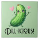 A delightful cartoon-style illustration of a Kaiwi pickle, beaming with a bright, happy smile and paired with the playful pun “Dill-icious.” This irresistibly cute veggie is bound to capture hearts and charm audiences everywhere.