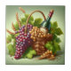 Le carrelage en céramique est présenté avec une belle bouteille de raisin et de vin dans un imprimé panier. Customisez cet objet ou achetez tel quel. Image sous licence