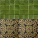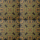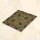Ce motif de carreaux de look gaufrée présente un motif répété de deux arbres de vie entrelacés en brun clair, or, et vert sur un arrière - plan noir. Leur conception ressemble à un noeud celtique ou à un autre motif ancien. Ce dessin semble avoir une profondeur en relief mais est imprimé à plat sur la carreaux en céramique. Ce carrelage est même de chaque côté, donc peut être utilisé dans un motif de répétition accent de carrelage ou utilisé comme un seul élément de décoration pour la décoration maison.