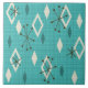 Inspiré par l'art abstrait des années 1950, ce design de l'ère atomique du milieu du siècle a des diamants et des starbursts Spoutnik. vert turquoise et bleu turquoise.