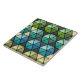 Ce carreau de céramique comporte une peinture numérique d'un motif amish d'édredon dans lequel les couleurs et l'ombrage (qui regardent naturellement teints des plantes et des fleurs) créent une illusion toujours changeante de 3D bloque, des hexagones + 6 étoiles dirigées. Options : 2 tailles, cadre en bois pour le trépied ou accrocher, comme couvercle pour la boîte-cadeau en bois.