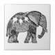 Un éléphant noir et blanc décoré des motifs audacieux.