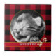 Boison rouge rustique et noir plaid motif photo personnalisée Carrelage en céramique avec décor festif de chaton bébé mignon pour les amateurs de chats.